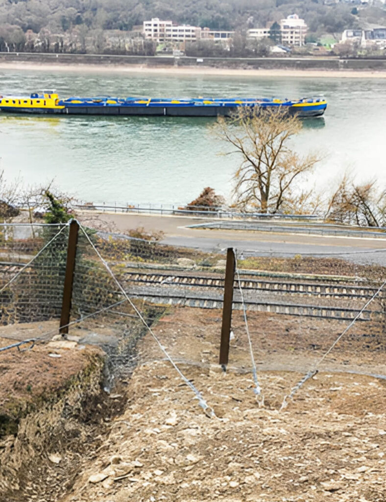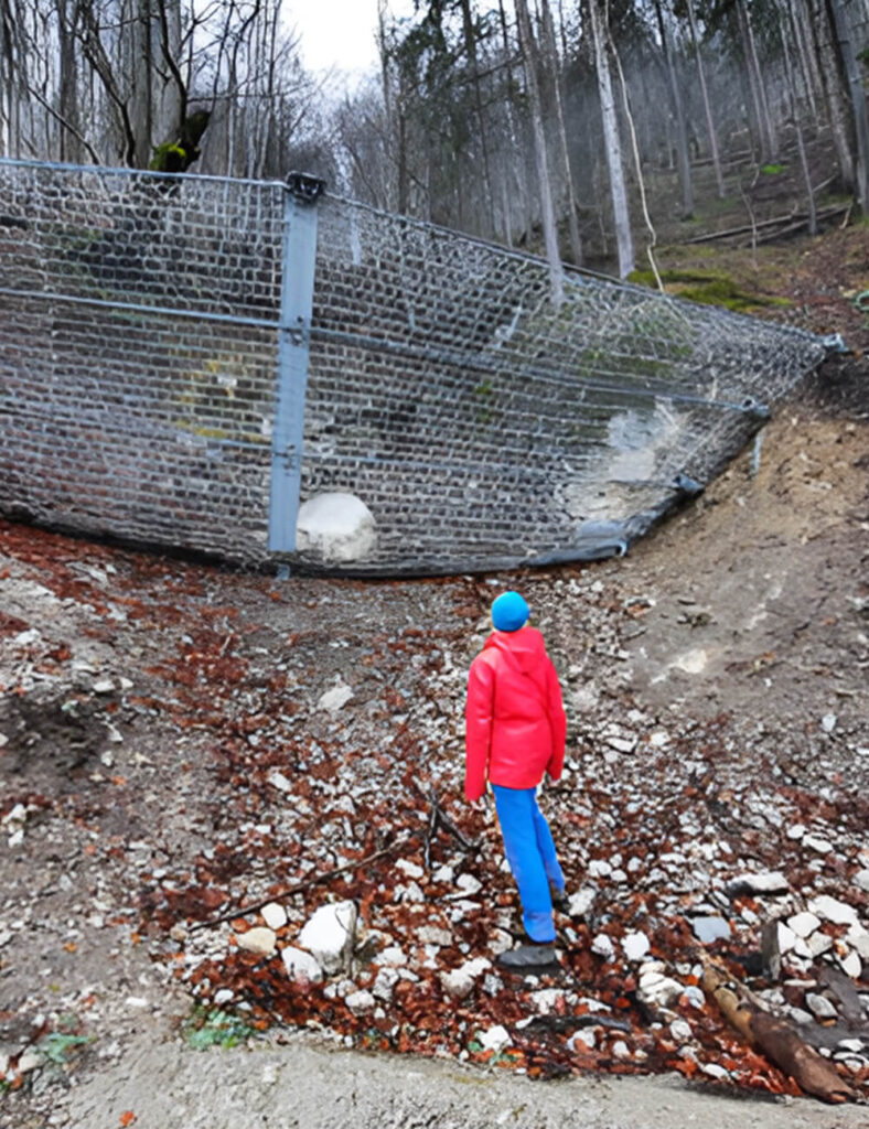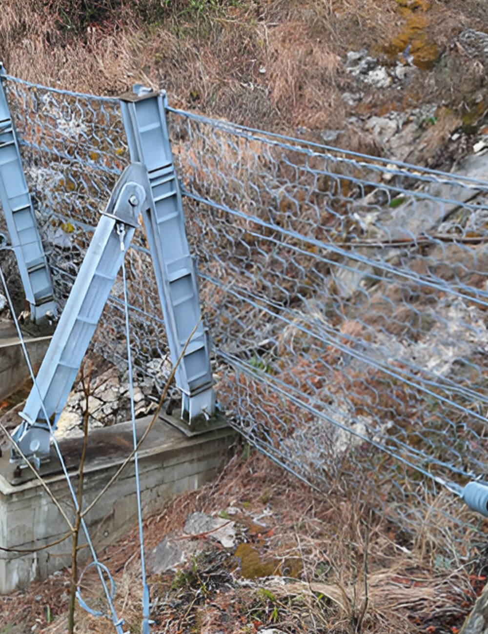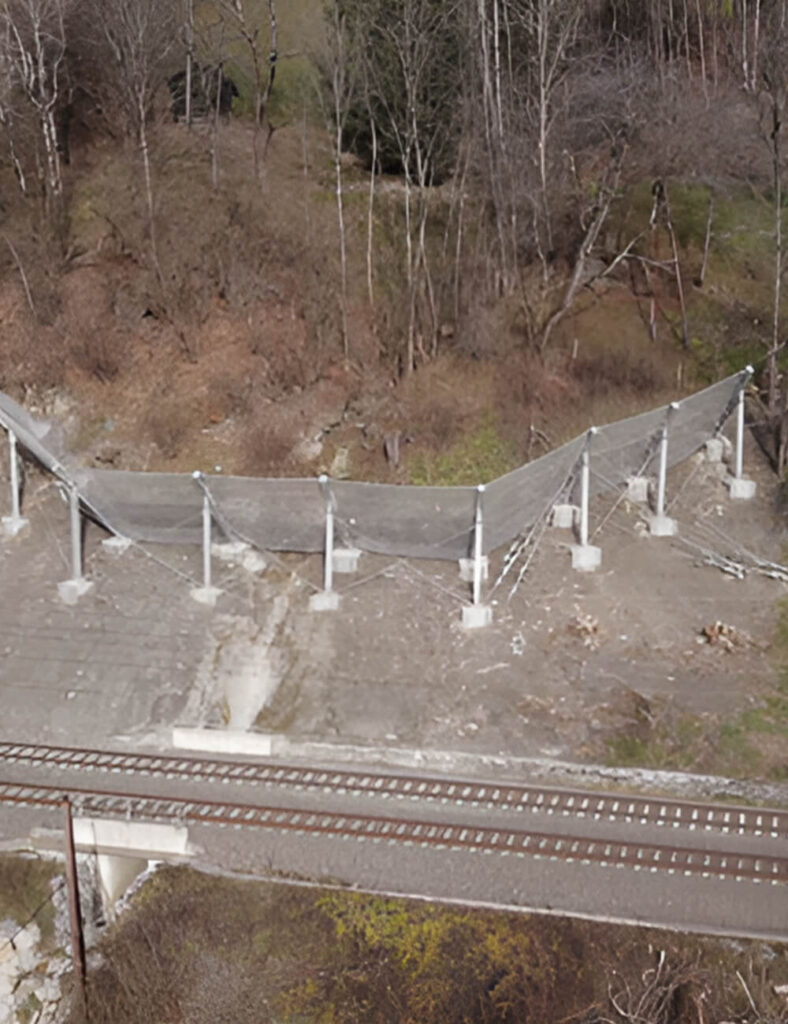 Geoquest Products offers engineered solutions to protect infrastructure, and assets from debris flows and debris floods. The threat of climate change raising the global temperatures, potentially causes a change in weather patterns, thawing of permafrost areas, increasing wildfires, debris flows, and shallow landslide activity. The use of flexible-net barriers can be an efficient alternative to the other traditional and costly mitigation measures such as dams and other rigid barriers. Each debris flow protection system is designed on a site-to-site basis, based on a thorough understanding of the debris flow characteristics.